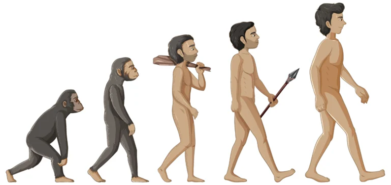 And so, over millions of years, these changes transformed monkeys into human beings like us. This adventure of change and adaptation is called "evolution", and it is the reason why we exist today as human beings.